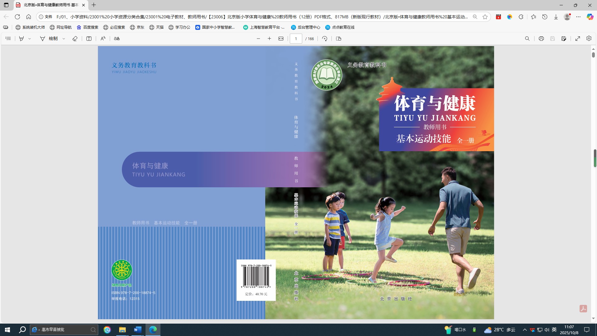 【23006】北京版小学体育与健康 教师用书(12册)PDF格式、817MB(新版现行教材)
