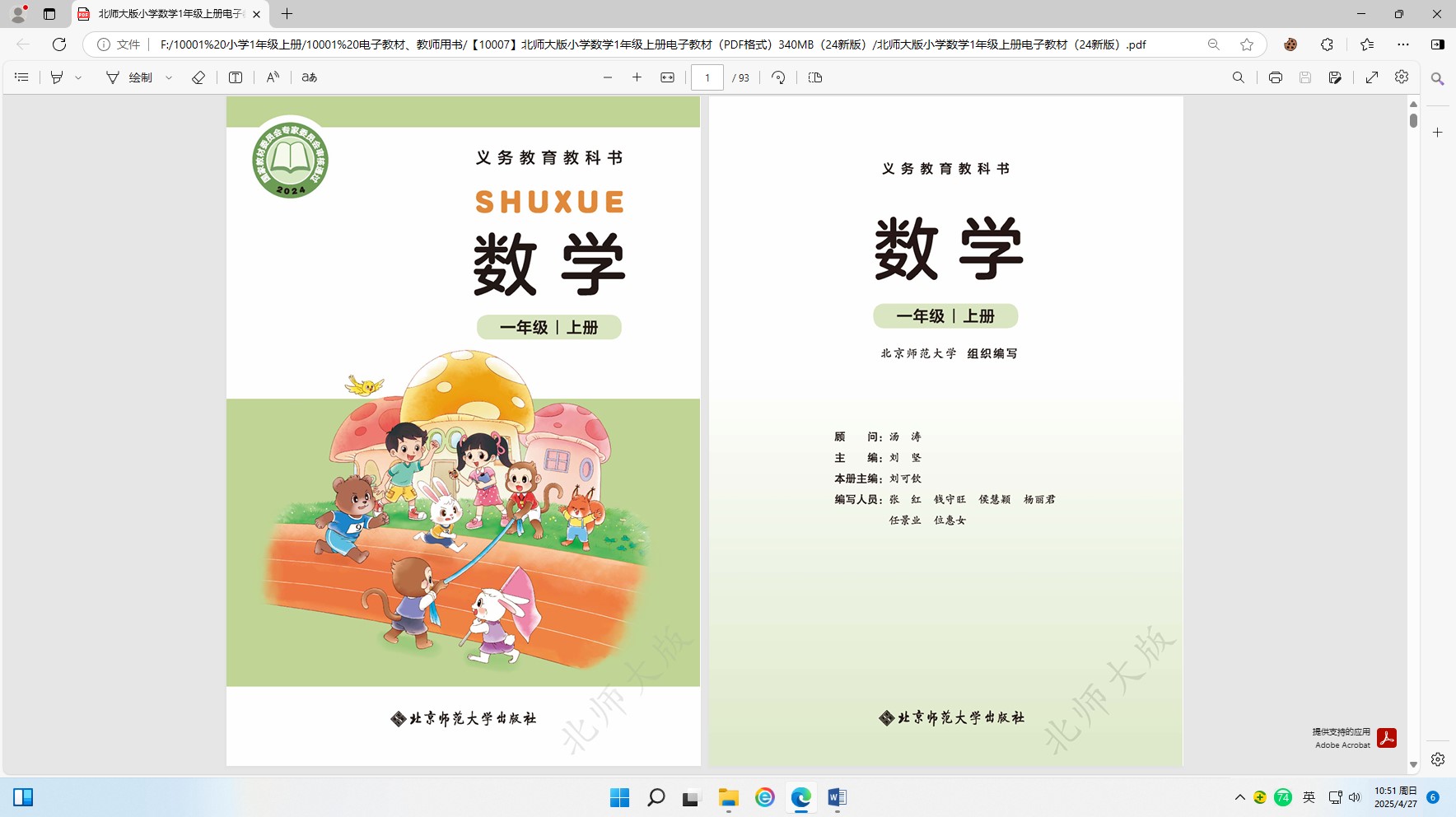 【23007】北师大版小学数学电子教材(1-6年级全)PDF格式、546MB(新版现行教材)