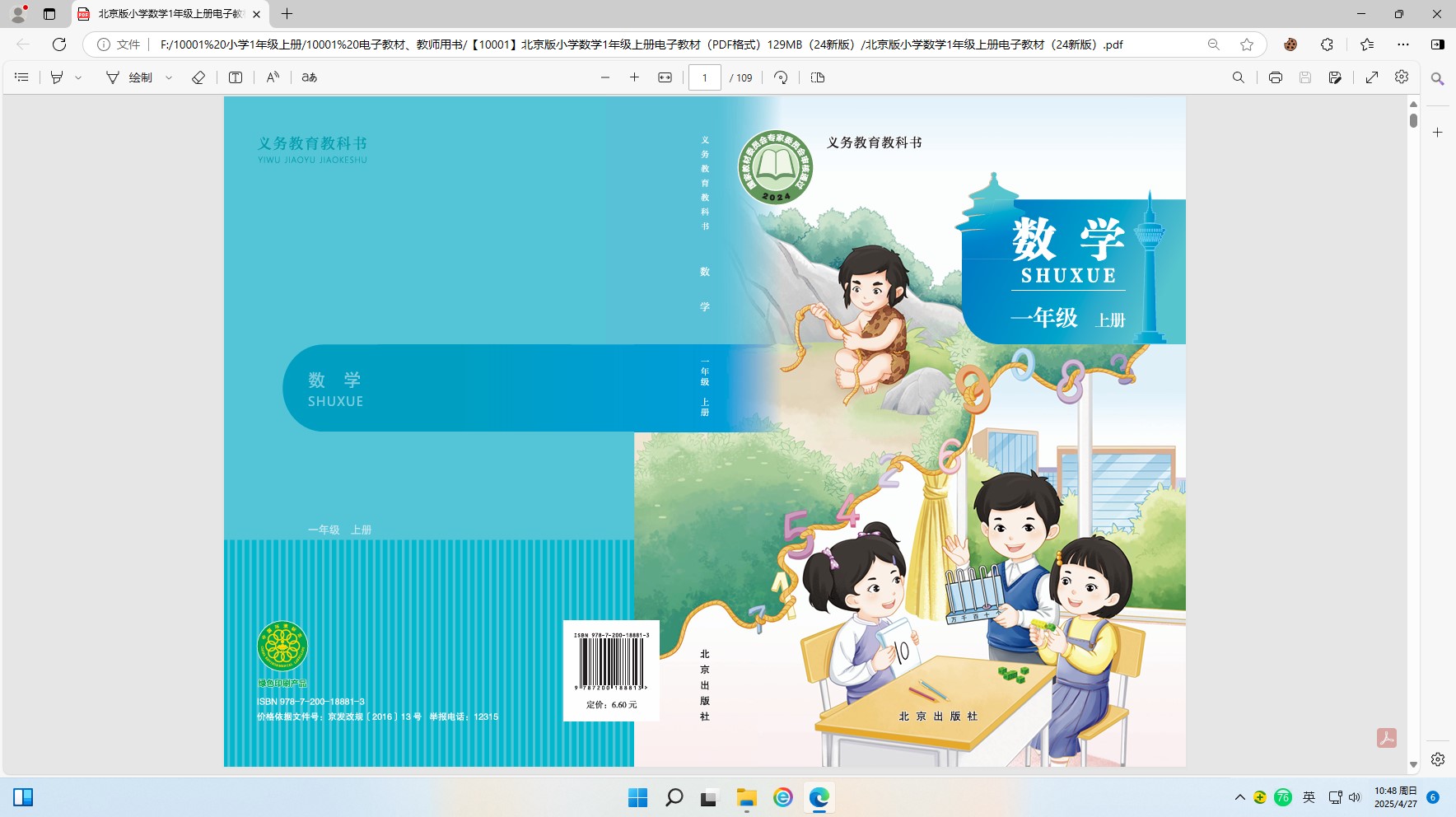 【23001】北京版小学数学电子教材(1-6年级全)PDF格式、510MB(新版现行教材)